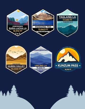 India Series - Tanglang La & Chang La, Vinyl Stickers - Decals - Peel & Stick, Sticker for Bike | Helmet | Laptop | Wall Etc. - 3 Inch X 3 Inch (Each) - Pack of 2 Stickers