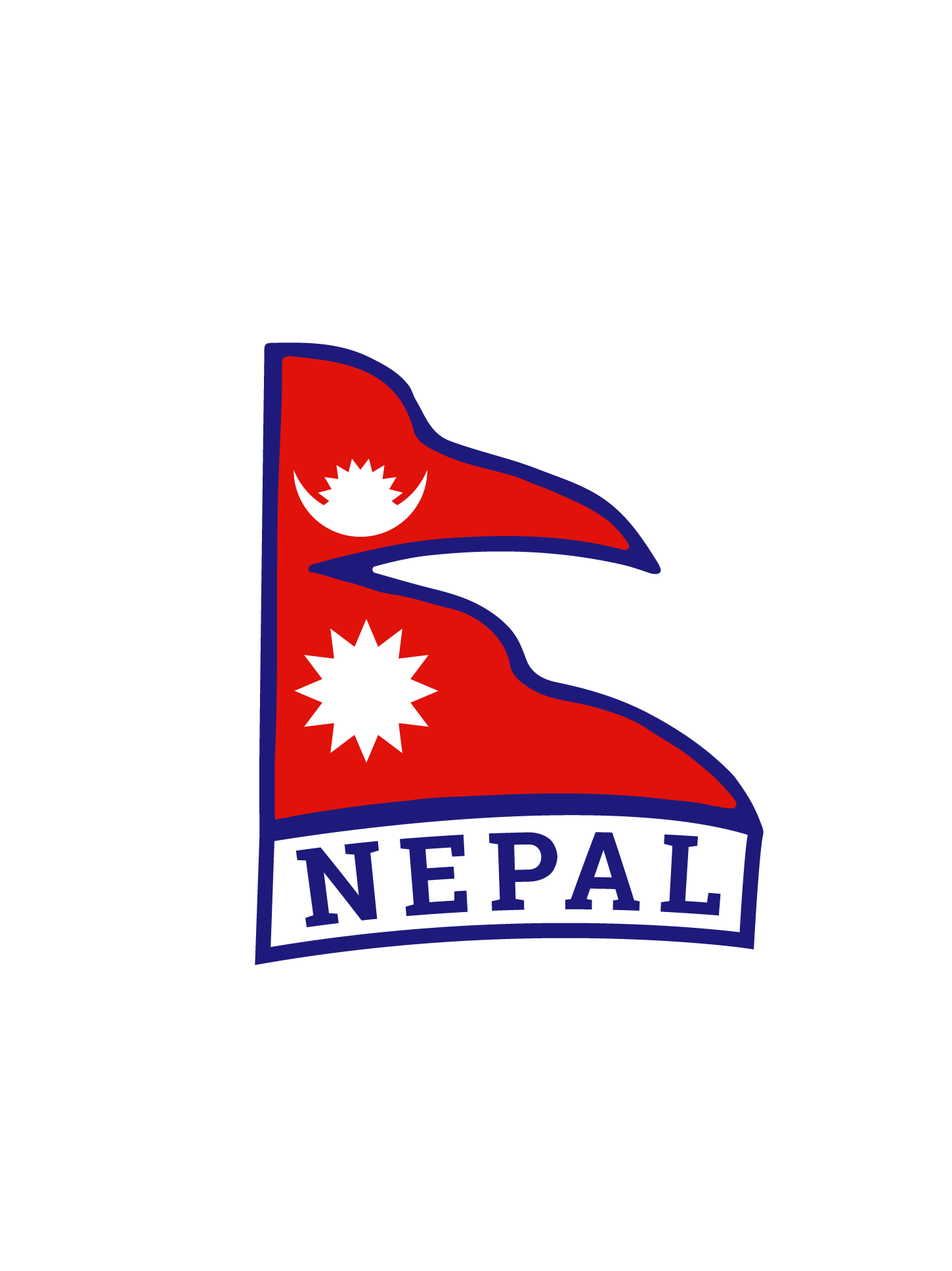 A unique national flag with two crimson red triangles bordered in blue, featuring a white moon on the top section and a white sun on the bottom. It’s the world’s only non-rectangular flag, symbolizing bravery, peace, and Nepal’s distinct identity.