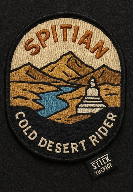 The StickTheVibe Spiti Valley Badge is a premium embroidered patch crafted to honor your adventure. Bold colors, rugged stitching, and a design inspired by the high-altitude mystique of Spiti — it’s made for bikers, wanderers, and storytellers.