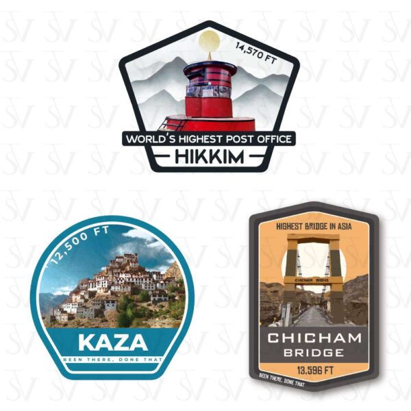 Stick The Vibe – India Series – Khardung La & Umling La, Vinyl Stickers – Decals – Peel & Stick, Sticker for Bike | Helmet | Laptop | Wall Etc. – 3 Inch X 3 Inch (Each) – Pack of 2 Stickers